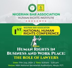 The Nigerian Bar Association- Human Rights Institute is hosting its first National Human Rights Conference with the Theme: Human Rights in Business and WorkPlace: Role of Lawyers.